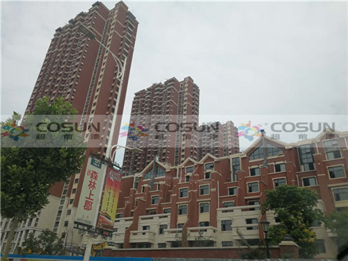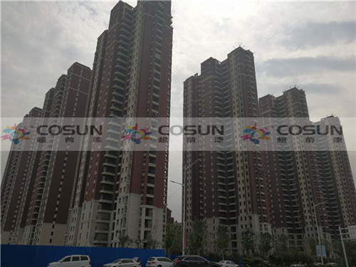 超前涂料 CCTV黃金展位合作伙伴鄭州中建七局森林上郡工地施工面積16萬(wàn)平方,為了追求高端社區(qū)的需要,能從視覺(jué)上彰顯整個(gè)建筑的高雅與莊重之美,選擇了天然真石漆做為外墻專(zhuān)用漆。