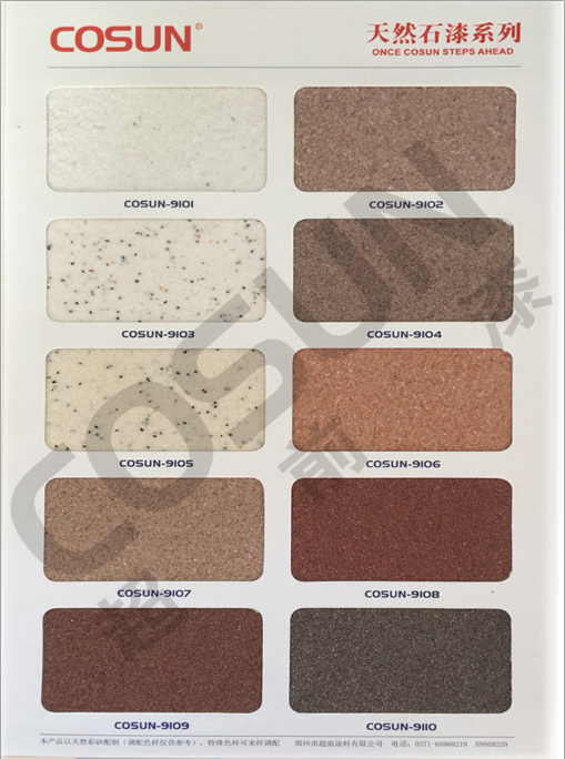 超前天然真石漆系列色卡由鄭州超前技術(shù)研發(fā)制作,色卡只展示公司個別產(chǎn)品,如果想了解更多有關(guān)真石漆相關(guān)產(chǎn)品可以點擊